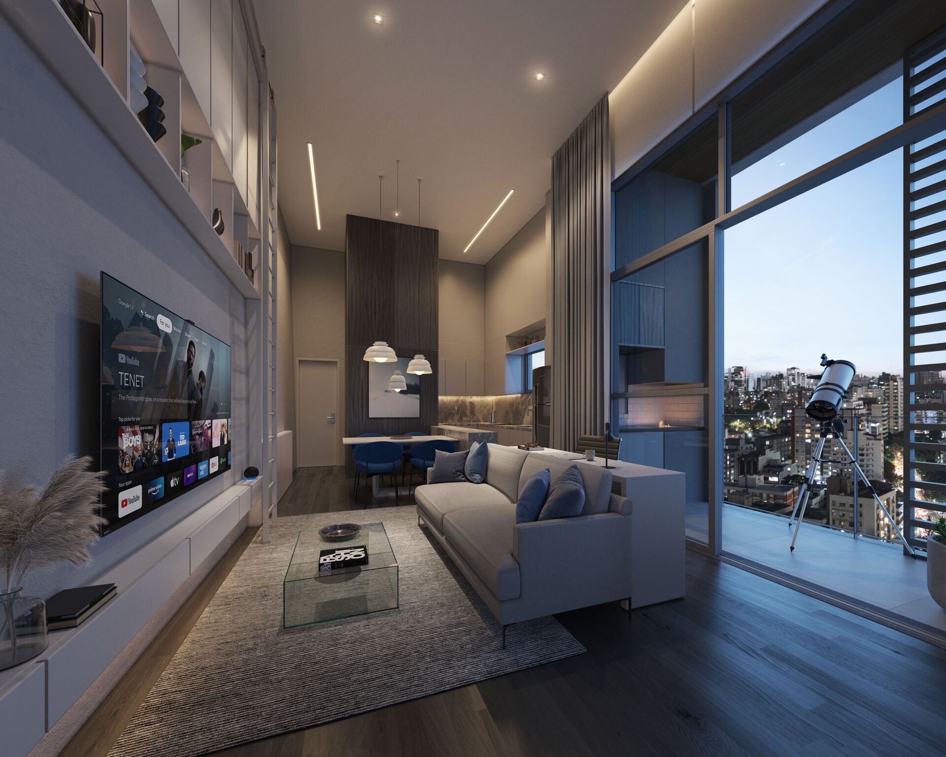 O Studio PLUS de 84,88m² é a maior unidade tipo studio do Opus e entrega uma experiência única de espaço, design e versatilidade.
